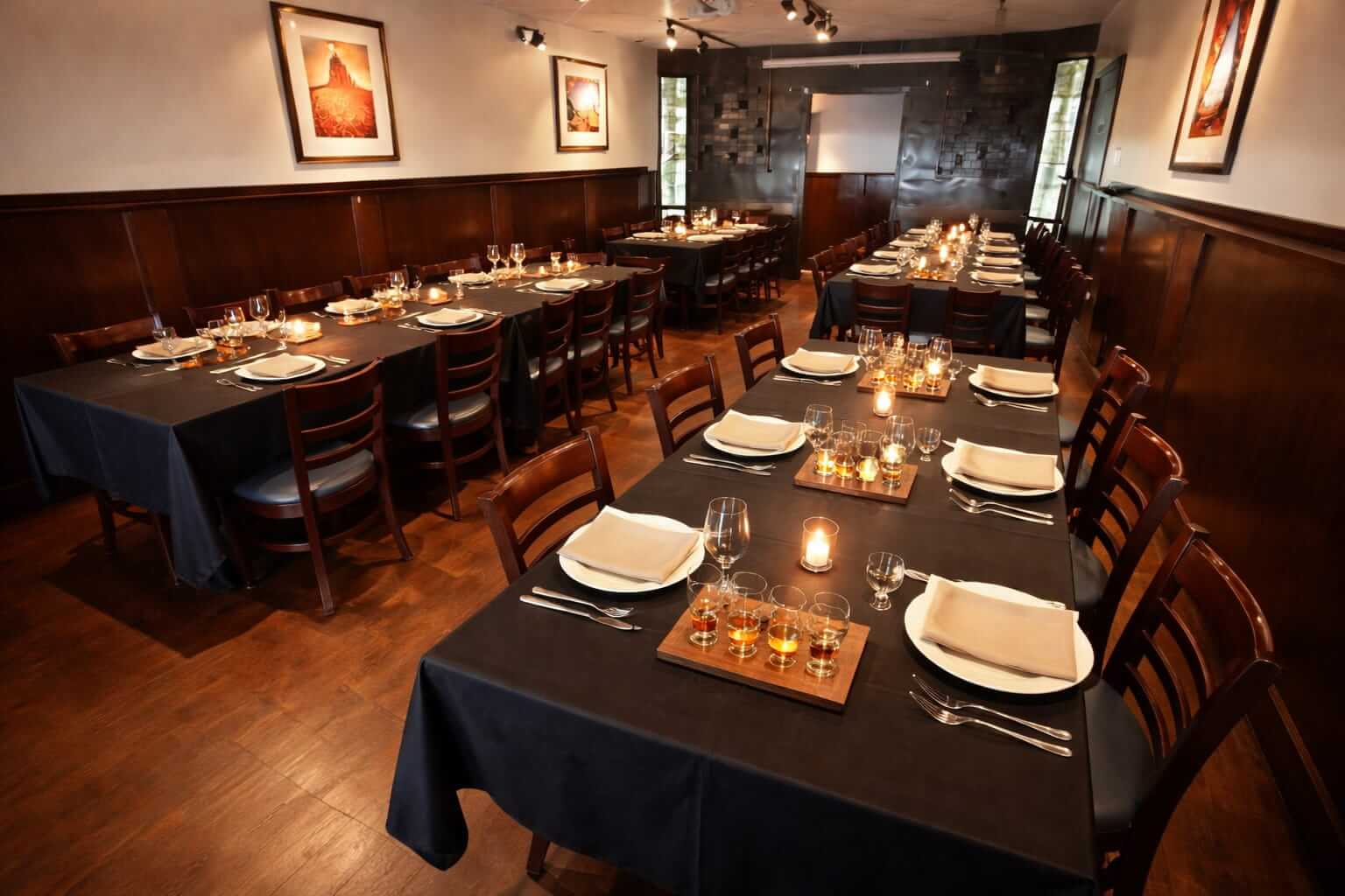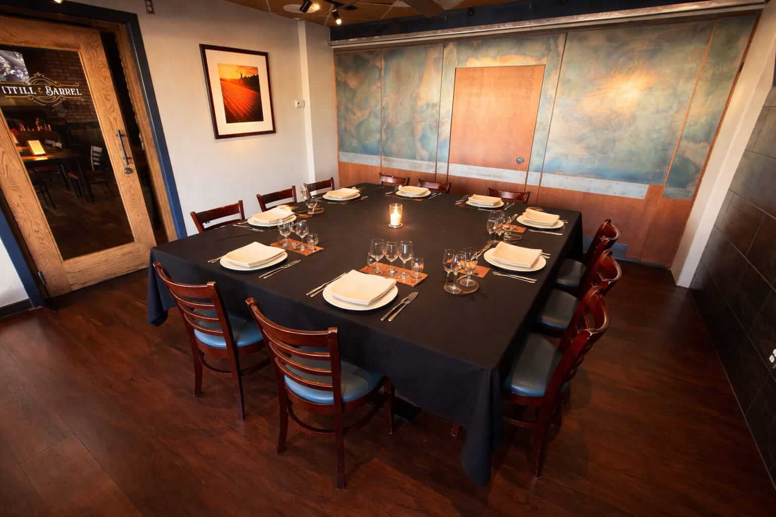 Our WEST ROOM can hold up to 20 guests at one table and 28 at separate tables.